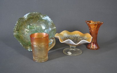 Lot Description:4 Various Pieces Carnival Glass