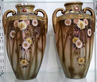 Lot Description:Two Satsuma Art Deco Pottery Metal Vases