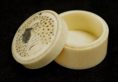 Lot Description:Chinese carved ivory tiger decorated pill box