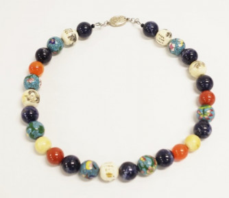 Lot Description:Good Chinese ivory stone & cloisonne bead necklace