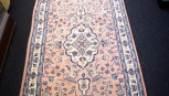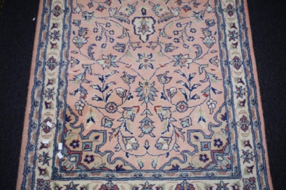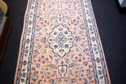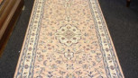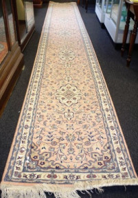 traditional design in pink tones, Cadry's Persian Carpets, Sydney, label attached, (length 570cm approx, width 80cm approx). -