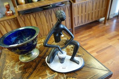Lot #247 - Anzengruber Austria ebonized terracotta African nude with bongo drum "Negertrommterin"
