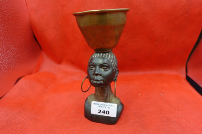 Lot #240 - Bronze Hagenauer style signed African bust and bowl of a woman