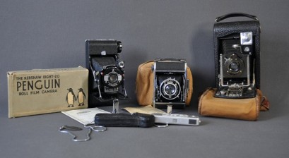 Incl. Kershaw Penguin 8-20 boxed with booklet; Minox 'Spy' camera; Dehel folding camera with instructions; Kodak autographic folding camera, No 3. -
