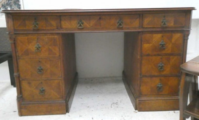 Lot Description:Antique Howard & Sons London parquetry oak desk
