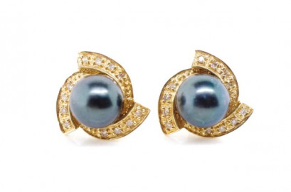 Lot Description:Black pearl, diamond and 14ct rose gold stud