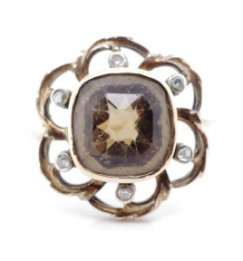 Lot Description:Antique smoky quartz, diamond set rose gold