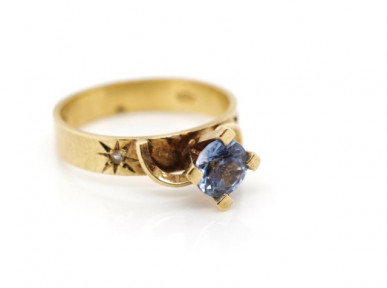 Lot Description:Blue gemstone and 9ct yellow gold ring