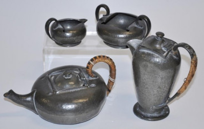 Lot Description:Tudric arts & crafts 4 piece pewter tea set