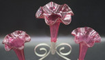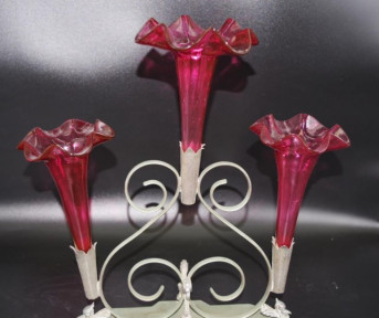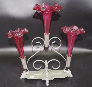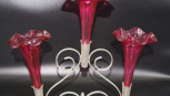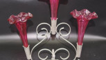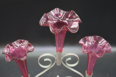Lot Description:Early three branch ruby glass epergne