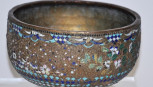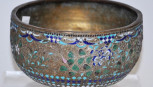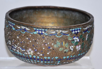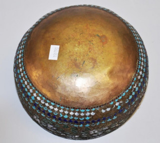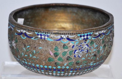 with exterior decoration of partial coloured enamel inlays of flowers & foliage, diameter 19cm approx. -