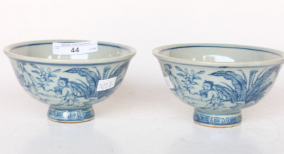 decorated with figures in an outdoor setting, each 7cm T and 12.5cm D