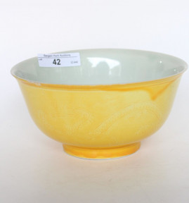 Lot Description:Chinese Imperial Yellow Glazed 'Dragon' Bowl