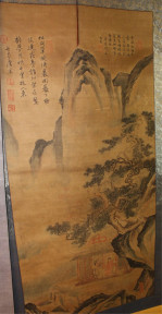 Lot #98 - Chinese scroll, scene of 2 figures and a hut