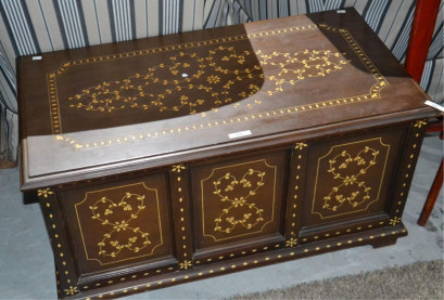 Lot #139 - Vintage timber trunk with inlaid detail to
