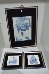 Lot #307 - 3 blue and white Chinese ceramic panels