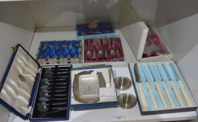Lot #321 - Shelf of mostly boxed cutlery