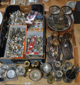 brass, silver plate and white metal items incl. beer steins, candle sticks, serving trays etc -