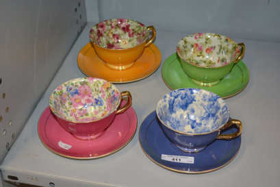 Lot #411 - 4 x modern cups and saucers with internal all over