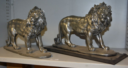 Lot #423 - 2 x white metallic lion figurines