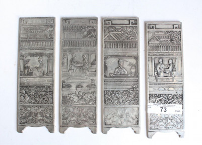 Lot #471 - Set of 4 x Chinese white metal plaques