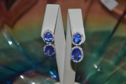 Lot Description:14ct White Gold Tanzanite & diamond drop earrings