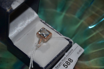 Lot #588 - 14ct rose Gold aquamarine and Diamond ring