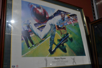 Lot Description:Framed sporting memorabilia of Shane Warne