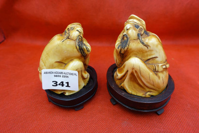 Lot #341 - Room 5 - Pair of Qing dynasty or early Republic period hand carved and signed scholar figures