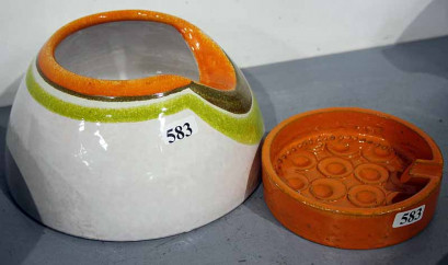 Lot #583 - An Italian Bitossi Style Ashtray & Pottery Bowl