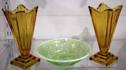 Lot #636 - A Pair of Art Deco Amber Glass Vases