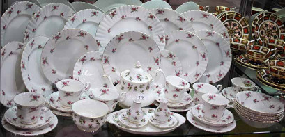 comprising dinner plates, side plates, bowls, bread and butter plates, tea pot, tea cups and saucers, salt and pepper shakers, three serving dishes and sugar basin. (44) -