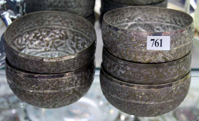 Lot Description:Five Indian Brass And Silver Plated Bowls