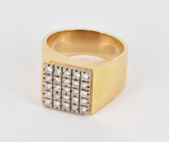 featuring 25 round cut diamonds, in 18ct yellow gold. Size V-W. Weight 20.4g. -