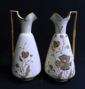 Lot Description:A Pair of Royal Devon Pitcher Vases with Floral & Gilt Detail