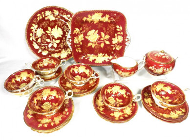 Lot Description:A Wedgwood "Tonquin Ruby" Tea Service