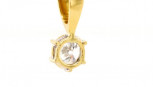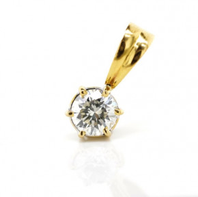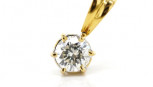 unmarked to six claw setting setting. Approx round brilliant cut 5.6mm diameter avg, 3.1mm depth 0.59ct calculated, VS clarity, thick to thin bruted girdle. Pendant weight 1.2 grams. Test as 18ct -