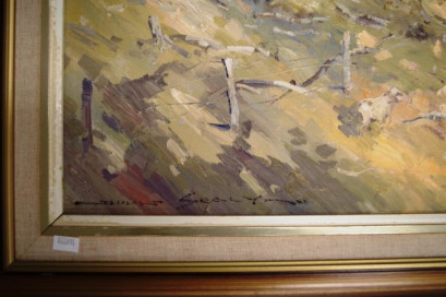 oil on canvas board, signed lower left, (49cm X 59cm approx). -
