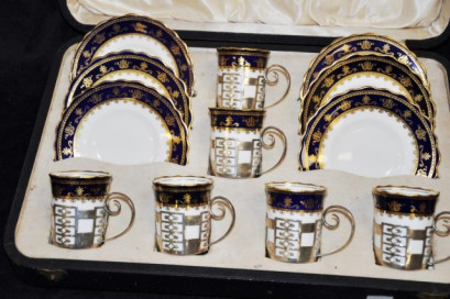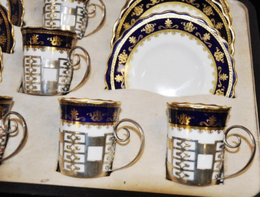 Lot Description:Antique Aynsley silver & ceramic coffee set
