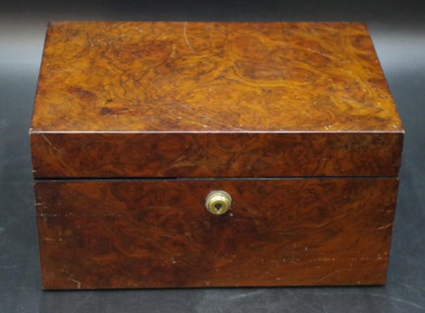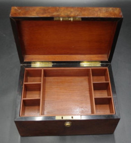 with coromandel and mahogany interior, 23cm wide, 15cm deep, 12cm high approx -