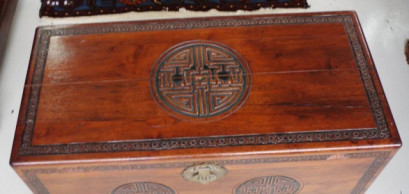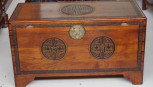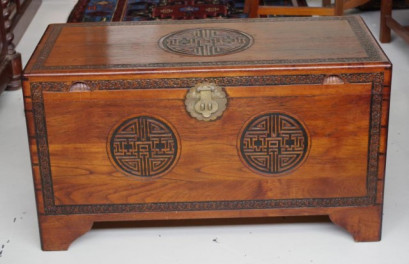 101cm wide, 49cm deep, 56cm high approx, lid cracked -