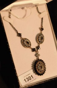set with zircon & black crystal -