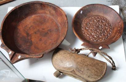 Lot Description:Three items to incl. two hand carved timber bowls