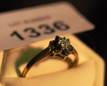 Lot #1336 - 9ct gold ring diamond & sapphire set