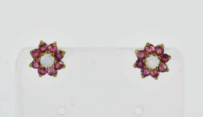 rubies and opals, set in 9ct yellow gold. Weight 1g. -