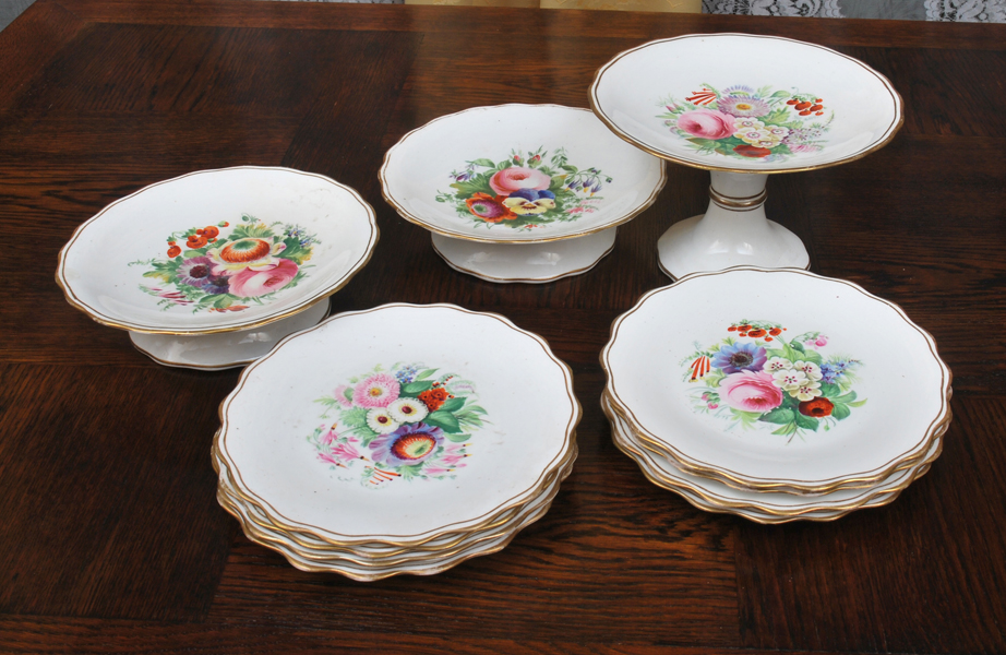 With eight plates, two footed dishes and a comport, the comport 14cm high. -