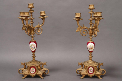 Lot Description:Pair of French Porcelain and Gilt Metal Candelabra