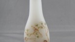 of slender baluster form, in opaque glass, decorated with enamel flowers and birds, with enamel green stopper, h 8.5cm