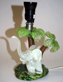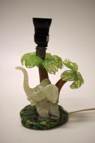 Lot Description:Vintage glass elephant & palm tree lamp