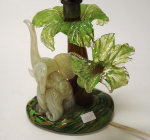 Lot #1321 - Vintage glass elephant & palm tree lamp
